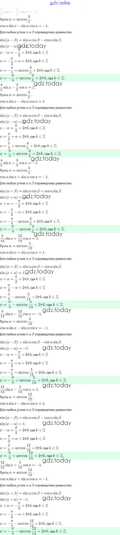 Ответы к §11. Тригонометрические уравнения и неравенства Решение. Глава 2. Тригонометрические формулы. Тригонометрические функции 11.49 Учебнику по Алгебре для 10 класса Никольский, Потапов Базовый и углубленный уровень Просвещение МГУ - школе 2015
