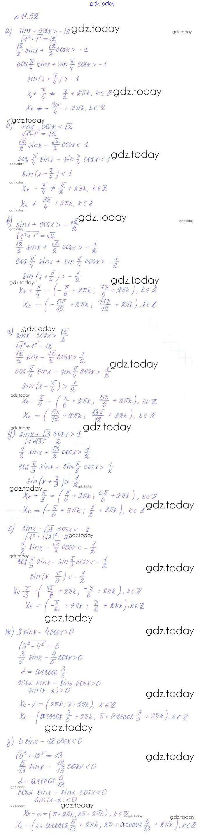 На страницах сайта gdz.today вы найдете учебный и вспомогательный материал, направленный на улучшения знаний школьной программы. ГДЗ - онлайн мир знаний §11. Тригонометрические уравнения и неравенства Решение к главе 2. Тригонометрические формулы. Тригонометрические функции 52 Учебнику по Алгебре для 10 класса Никольский, Потапов Базовый и углубленный уровень Просвещение МГУ - школе 2015