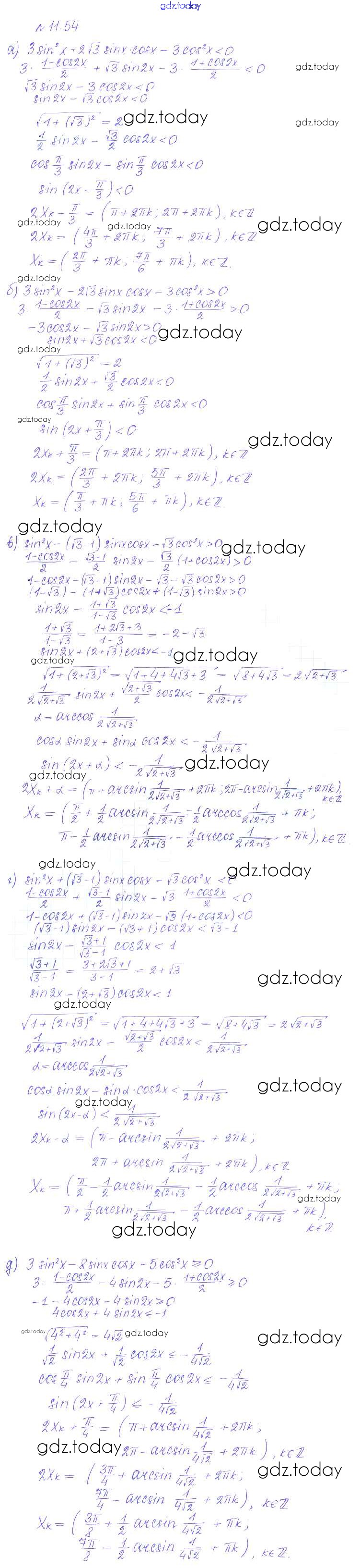 На страницах сайта gdz.today вы найдете учебный и вспомогательный материал, направленный на улучшения знаний школьной программы. ГДЗ - онлайн мир знаний §11. Тригонометрические уравнения и неравенства Решение к главе 2. Тригонометрические формулы. Тригонометрические функции 54 Учебнику по Алгебре для 10 класса Никольский, Потапов Базовый и углубленный уровень Просвещение МГУ - школе 2015
