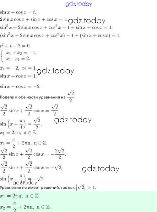 Ответы к §11. Тригонометрические уравнения и неравенства Решение. Глава 2. Тригонометрические формулы. Тригонометрические функции 11.56 Учебнику по Алгебре для 10 класса Никольский, Потапов Базовый и углубленный уровень Просвещение МГУ - школе 2015