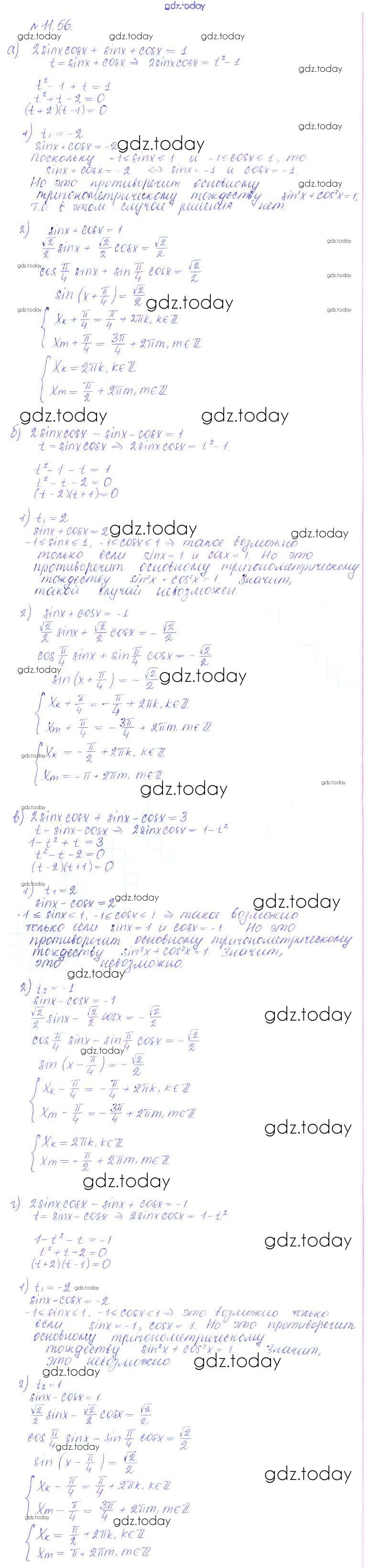 На страницах сайта gdz.today вы найдете учебный и вспомогательный материал, направленный на улучшения знаний школьной программы. ГДЗ - онлайн мир знаний §11. Тригонометрические уравнения и неравенства Решение к главе 2. Тригонометрические формулы. Тригонометрические функции 56 Учебнику по Алгебре для 10 класса Никольский, Потапов Базовый и углубленный уровень Просвещение МГУ - школе 2015