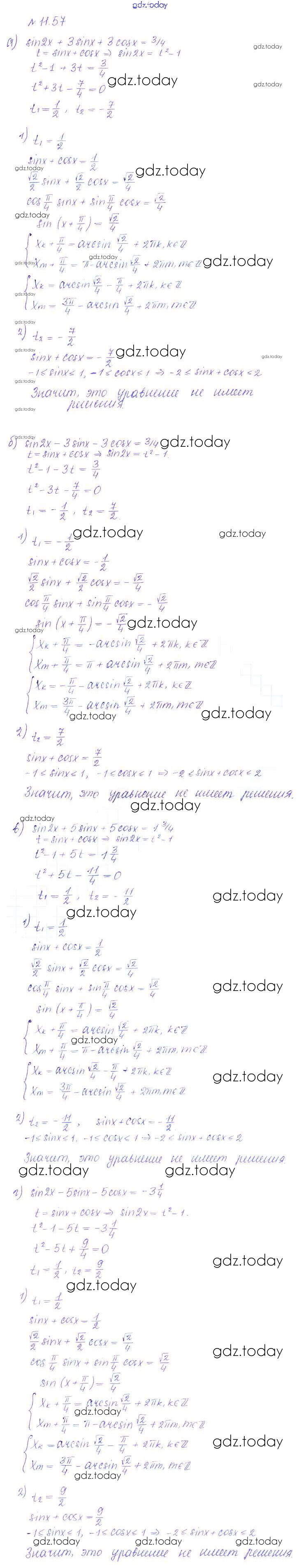 На страницах сайта gdz.today вы найдете учебный и вспомогательный материал, направленный на улучшения знаний школьной программы. ГДЗ - онлайн мир знаний §11. Тригонометрические уравнения и неравенства Решение к главе 2. Тригонометрические формулы. Тригонометрические функции 57 Учебнику по Алгебре для 10 класса Никольский, Потапов Базовый и углубленный уровень Просвещение МГУ - школе 2015