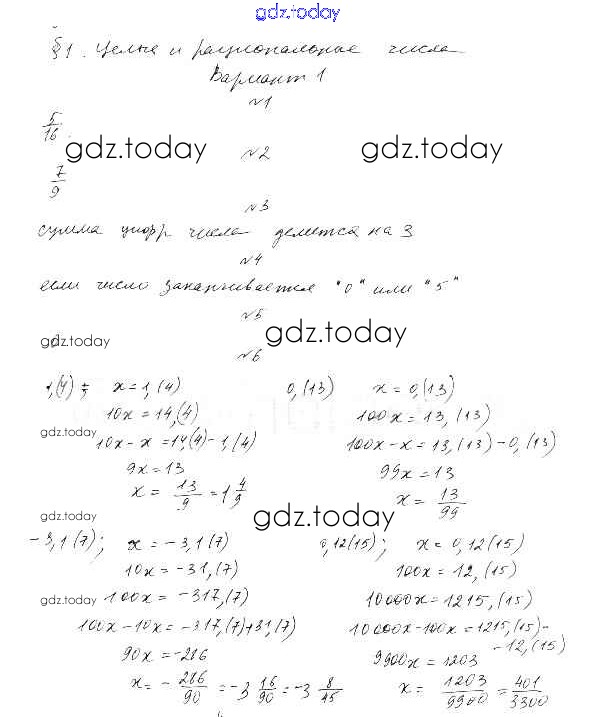 Ответы к §1. Целые и рациональные числа Решение к главе 1. Действительные числа вариант 1 Дидактическим материалам по Алгебре для 10 класса Шабунин, Ткачева Базовый и углубленный уровень Просвещение 2017