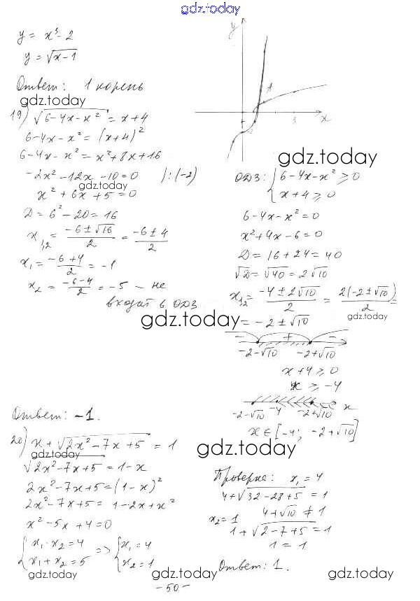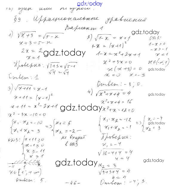 На страницах сайта gdz.today вы найдете учебный и вспомогательный материал, направленный на улучшения знаний школьной программы. ГДЗ - онлайн мир знаний §9. Иррациональные уравнения Решение к главе 2. Степенная функция вариант 1 Дидактическим материалам по Алгебре для 10 класса Шабунин, Ткачева Базовый и углубленный уровень Просвещение 2017