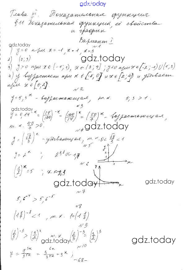 На страницах сайта gdz.today вы найдете учебный и вспомогательный материал, направленный на улучшения знаний школьной программы. ГДЗ - онлайн мир знаний §11. Показательная функция, её свойства и график Решение к главе 3. Показательная функция вариант 1 Дидактическим материалам по Алгебре для 10 класса Шабунин, Ткачева Базовый и углубленный уровень Просвещение 2017