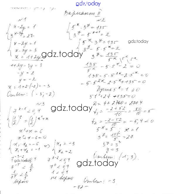 На страницах сайта gdz.today вы найдете учебный и вспомогательный материал, направленный на улучшения знаний школьной программы. ГДЗ - онлайн мир знаний §14. Системы показательных уравнений и неравенств Решение к главе 3. Показательная функция вариант 2 Дидактическим материалам по Алгебре для 10 класса Шабунин, Ткачева Базовый и углубленный уровень Просвещение 2017