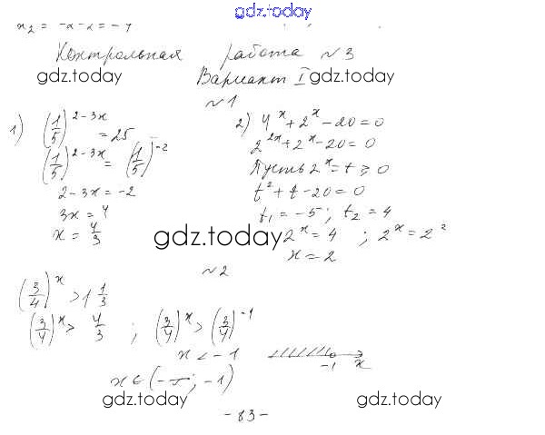 На страницах сайта gdz.today вы найдете учебный и вспомогательный материал, направленный на улучшения знаний школьной программы. ГДЗ - онлайн мир знаний Контрольная работа №3 Решение к главе 3. Показательная функция вариант 1 Дидактическим материалам по Алгебре для 10 класса Шабунин, Ткачева Базовый и углубленный уровень Просвещение 2017