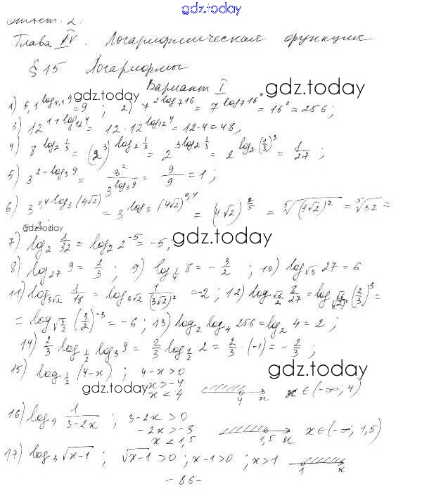 На страницах сайта gdz.today вы найдете учебный и вспомогательный материал, направленный на улучшения знаний школьной программы. ГДЗ - онлайн мир знаний §15. Логарифмы Решение к главе 4. Логарифмическая функция вариант 1 Дидактическим материалам по Алгебре для 10 класса Шабунин, Ткачева Базовый и углубленный уровень Просвещение 2017
