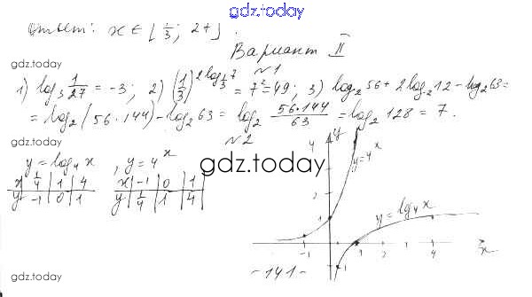 На страницах сайта gdz.today вы найдете учебный и вспомогательный материал, направленный на улучшения знаний школьной программы. ГДЗ - онлайн мир знаний Контрольная работа №4 Решение к главе 4. Логарифмическая функция вариант 2 Дидактическим материалам по Алгебре для 10 класса Шабунин, Ткачева Базовый и углубленный уровень Просвещение 2017