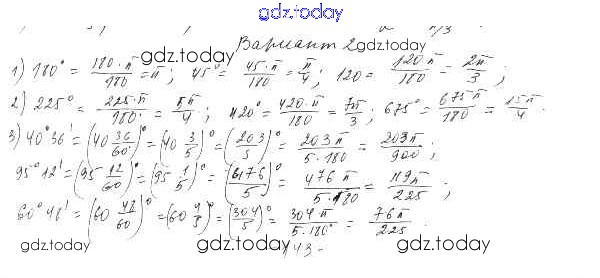На страницах сайта gdz.today вы найдете учебный и вспомогательный материал, направленный на улучшения знаний школьной программы. ГДЗ - онлайн мир знаний §21. Радианная мера угла Решение к главе 5. Тригонометрические формулы вариант 2 Дидактическим материалам по Алгебре для 10 класса Шабунин, Ткачева Базовый и углубленный уровень Просвещение 2017