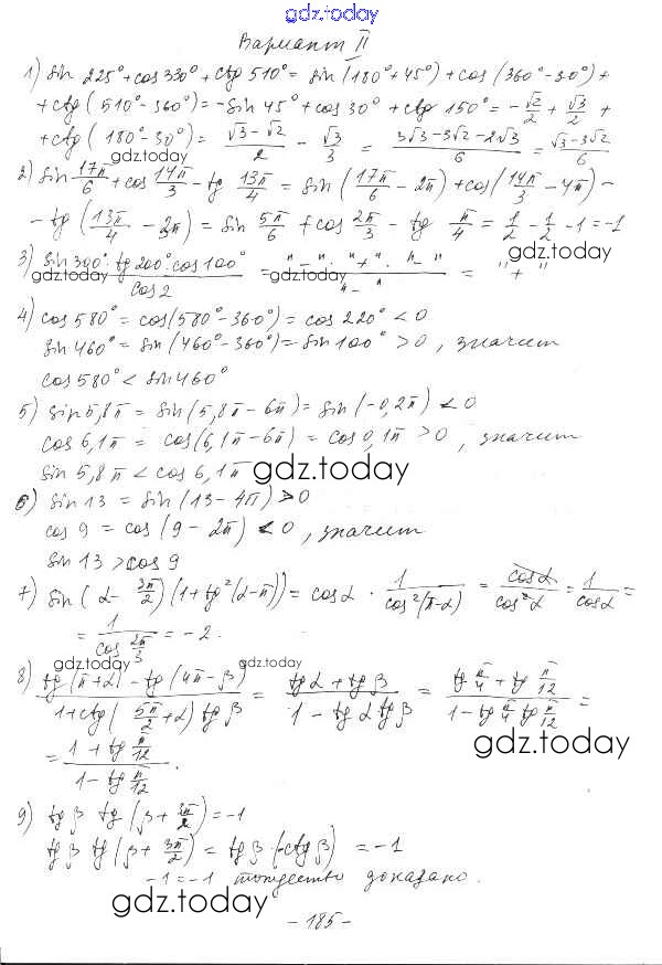 На страницах сайта gdz.today вы найдете учебный и вспомогательный материал, направленный на улучшения знаний школьной программы. ГДЗ - онлайн мир знаний §31. Формулы приведения Решение к главе 5. Тригонометрические формулы вариант 2 Дидактическим материалам по Алгебре для 10 класса Шабунин, Ткачева Базовый и углубленный уровень Просвещение 2017