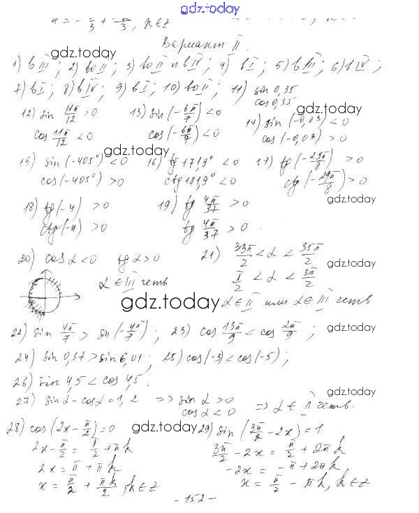 На страницах сайта gdz.today вы найдете учебный и вспомогательный материал, направленный на улучшения знаний школьной программы. ГДЗ - онлайн мир знаний §24. Знаки синуса, косинуса и тангенса Решение к главе 5. Тригонометрические формулы вариант 2 Дидактическим материалам по Алгебре для 10 класса Шабунин, Ткачева Базовый и углубленный уровень Просвещение 2017
