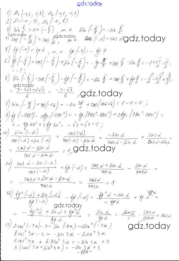 На страницах сайта gdz.today вы найдете учебный и вспомогательный материал, направленный на улучшения знаний школьной программы. ГДЗ - онлайн мир знаний §27. Синус, косинус и тангенс углов а и -а Решение к главе 5. Тригонометрические формулы вариант 1 Дидактическим материалам по Алгебре для 10 класса Шабунин, Ткачева Базовый и углубленный уровень Просвещение 2017