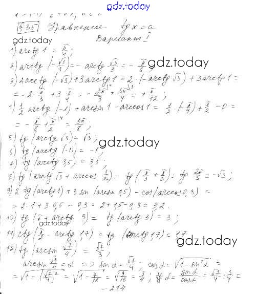 На страницах сайта gdz.today вы найдете учебный и вспомогательный материал, направленный на улучшения знаний школьной программы. ГДЗ - онлайн мир знаний §35. Уравнение tgx = а Решение к главе 6. Тригонометрические уравнения вариант 1 Дидактическим материалам по Алгебре для 10 класса Шабунин, Ткачева Базовый и углубленный уровень Просвещение 2017