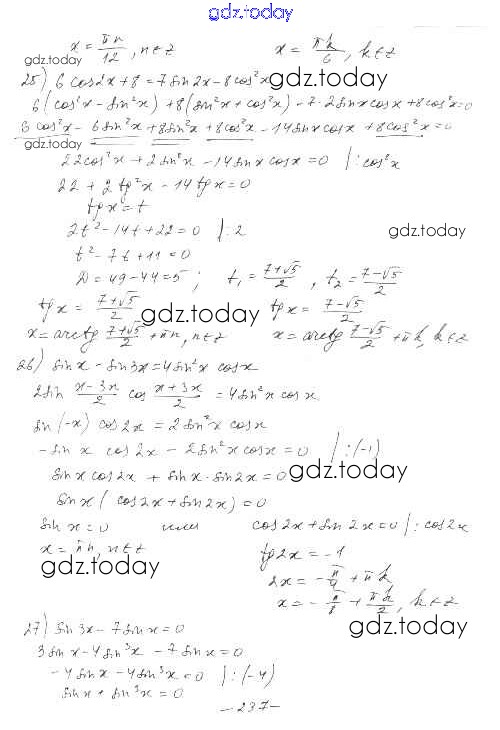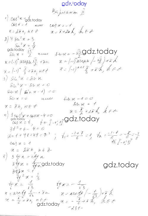 На страницах сайта gdz.today вы найдете учебный и вспомогательный материал, направленный на улучшения знаний школьной программы. ГДЗ - онлайн мир знаний §36. Решение тригонометрических уравнений Решение к главе 6. Тригонометрические уравнения вариант 2 Дидактическим материалам по Алгебре для 10 класса Шабунин, Ткачева Базовый и углубленный уровень Просвещение 2017
