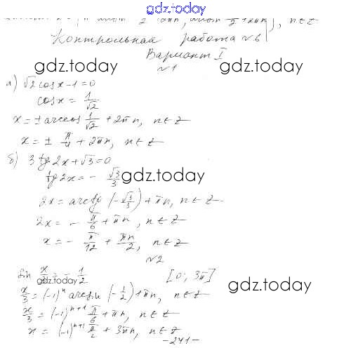 На страницах сайта gdz.today вы найдете учебный и вспомогательный материал, направленный на улучшения знаний школьной программы. ГДЗ - онлайн мир знаний Контрольная работа №6 Решение к главе 6. Тригонометрические уравнения вариант 1 Дидактическим материалам по Алгебре для 10 класса Шабунин, Ткачева Базовый и углубленный уровень Просвещение 2017