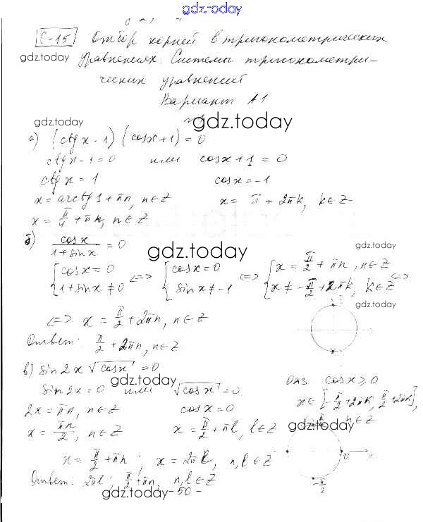 На страницах сайта gdz.today вы найдете учебный и вспомогательный материал, направленный на улучшения знаний школьной программы. ГДЗ - онлайн мир знаний СР-15. Варианты Решение к самостоятельным работам А1 Самостоятельным и контрольным работам по Алгебре для 10-11 класса Ершова, Голобородько Илекса 2016