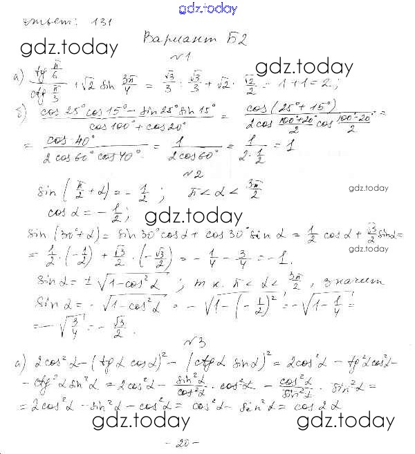 На страницах сайта gdz.today вы найдете учебный и вспомогательный материал, направленный на улучшения знаний школьной программы. ГДЗ - онлайн мир знаний КР-1. Варианты Решение к контрольным работам Б2 Самостоятельным и контрольным работам по Алгебре для 10-11 класса Ершова, Голобородько Илекса 2016