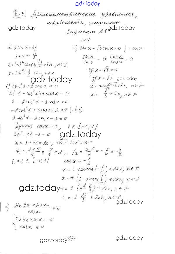 На страницах сайта gdz.today вы найдете учебный и вспомогательный материал, направленный на улучшения знаний школьной программы. ГДЗ - онлайн мир знаний КР-3. Варианты Решение к контрольным работам А1 Самостоятельным и контрольным работам по Алгебре для 10-11 класса Ершова, Голобородько Илекса 2016
