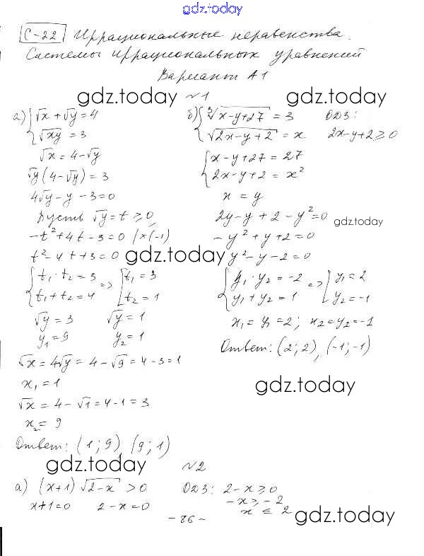 На страницах сайта gdz.today вы найдете учебный и вспомогательный материал, направленный на улучшения знаний школьной программы. ГДЗ - онлайн мир знаний СР-22. Варианты Решение к самостоятельным работам А1 Самостоятельным и контрольным работам по Алгебре для 10-11 класса Ершова, Голобородько Илекса 2016