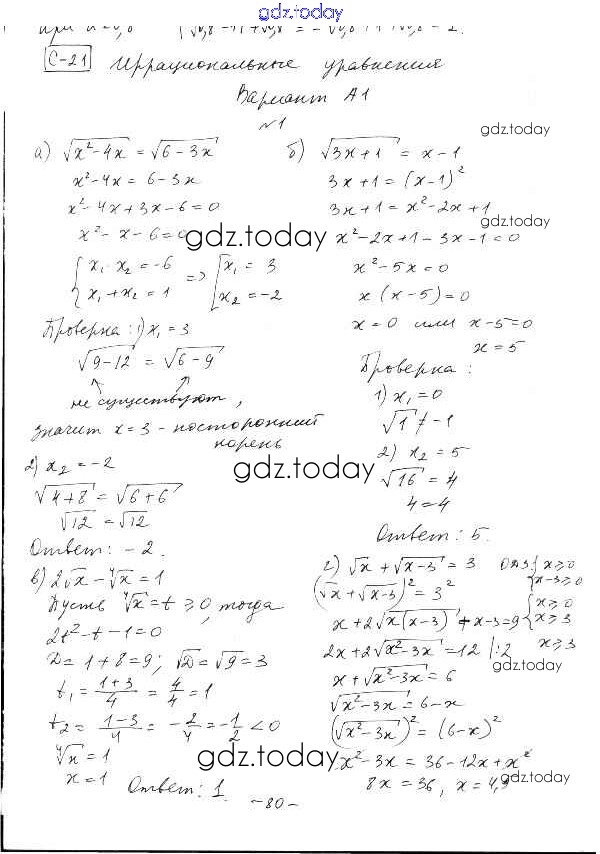 На страницах сайта gdz.today вы найдете учебный и вспомогательный материал, направленный на улучшения знаний школьной программы. ГДЗ - онлайн мир знаний СР-21. Варианты Решение к самостоятельным работам А1 Самостоятельным и контрольным работам по Алгебре для 10-11 класса Ершова, Голобородько Илекса 2016