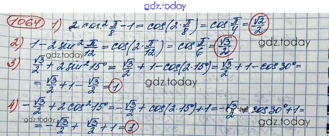 Ответы к Упражнения 1064 Учебнику по Алгебре для 10 класса Колягин, Ткачёва Базовый и углубленный уровень Просвещение 2017