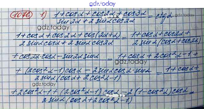 На страницах сайта gdz.today вы найдете учебный и вспомогательный материал, направленный на улучшения знаний школьной программы. ГДЗ - онлайн мир знаний Упражнения 1076 Учебнику по Алгебре для 10 класса Колягин, Ткачёва Базовый и углубленный уровень Просвещение 2017