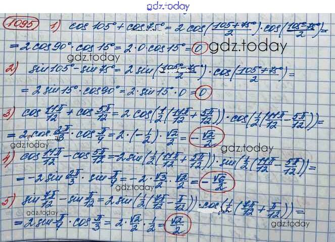 Ответы к Упражнения 1095 Учебнику по Алгебре для 10 класса Колягин, Ткачёва Базовый и углубленный уровень Просвещение 2017