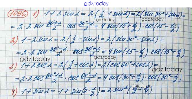 Ответы к Упражнения 1096 Учебнику по Алгебре для 10 класса Колягин, Ткачёва Базовый и углубленный уровень Просвещение 2017