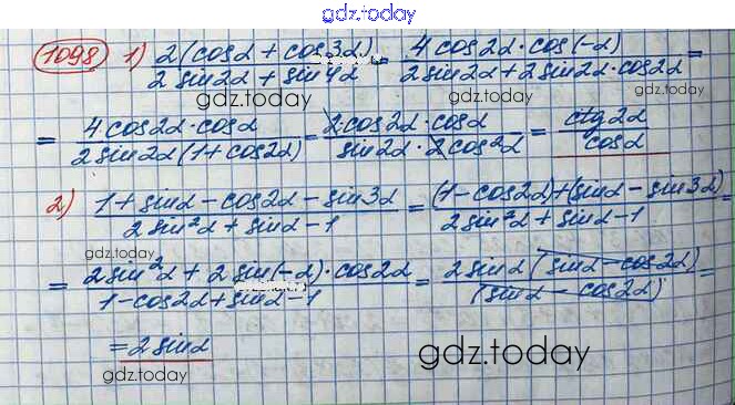 На страницах сайта gdz.today вы найдете учебный и вспомогательный материал, направленный на улучшения знаний школьной программы. ГДЗ - онлайн мир знаний Упражнения 1098 Учебнику по Алгебре для 10 класса Колягин, Ткачёва Базовый и углубленный уровень Просвещение 2017