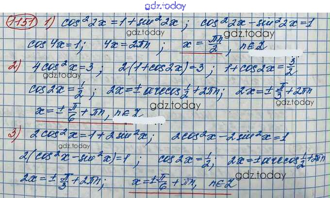 Ответы к Упражнения 1151 Учебнику по Алгебре для 10 класса Колягин, Ткачёва Базовый и углубленный уровень Просвещение 2017