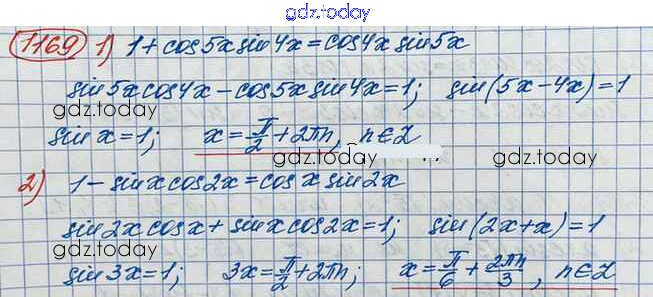 Ответы к Упражнения 1169 Учебнику по Алгебре для 10 класса Колягин, Ткачёва Базовый и углубленный уровень Просвещение 2017