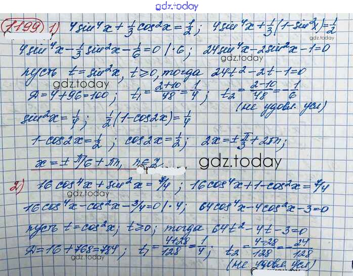 На страницах сайта gdz.today вы найдете учебный и вспомогательный материал, направленный на улучшения знаний школьной программы. ГДЗ - онлайн мир знаний Упражнения 1199 Учебнику по Алгебре для 10 класса Колягин, Ткачёва Базовый и углубленный уровень Просвещение 2017