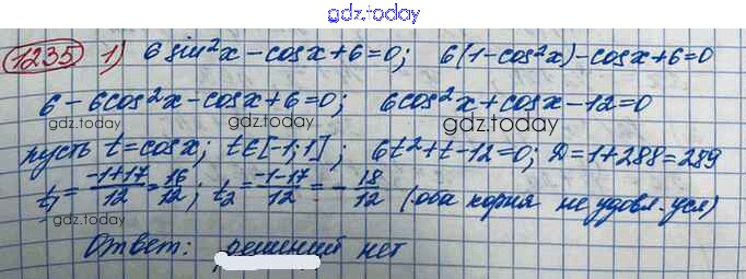 На страницах сайта gdz.today вы найдете учебный и вспомогательный материал, направленный на улучшения знаний школьной программы. ГДЗ - онлайн мир знаний Упражнения 1235 Учебнику по Алгебре для 10 класса Колягин, Ткачёва Базовый и углубленный уровень Просвещение 2017
