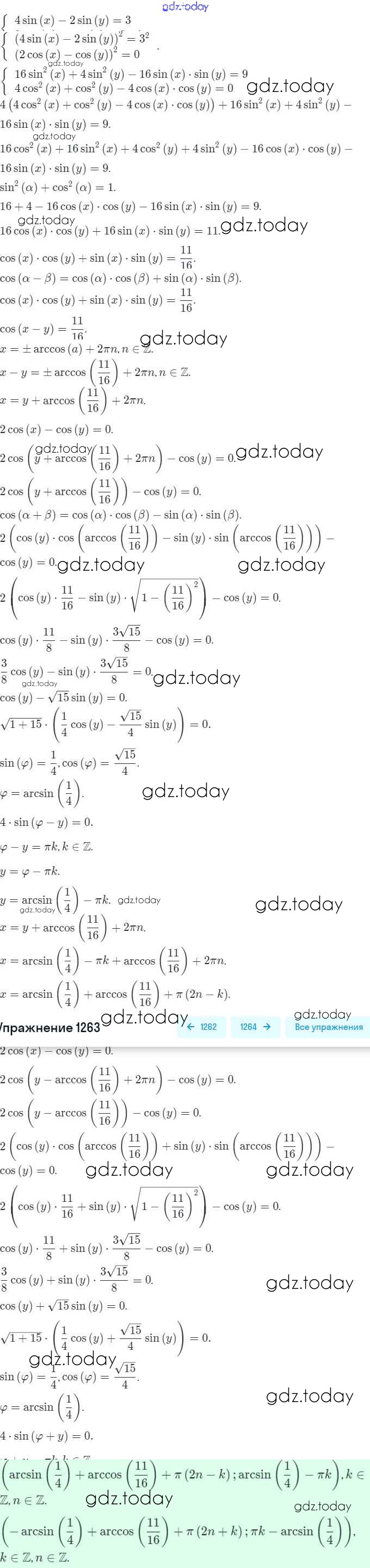 Ответы к Решение. Упражнения 1263 Учебнику по Алгебре для 10 класса Колягин, Ткачёва Базовый и углубленный уровень Просвещение 2017