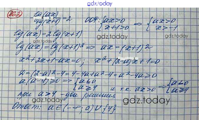 На страницах сайта gdz.today вы найдете учебный и вспомогательный материал, направленный на улучшения знаний школьной программы. ГДЗ - онлайн мир знаний Упражнения 862 Учебнику по Алгебре для 10 класса Колягин, Ткачёва Базовый и углубленный уровень Просвещение 2017