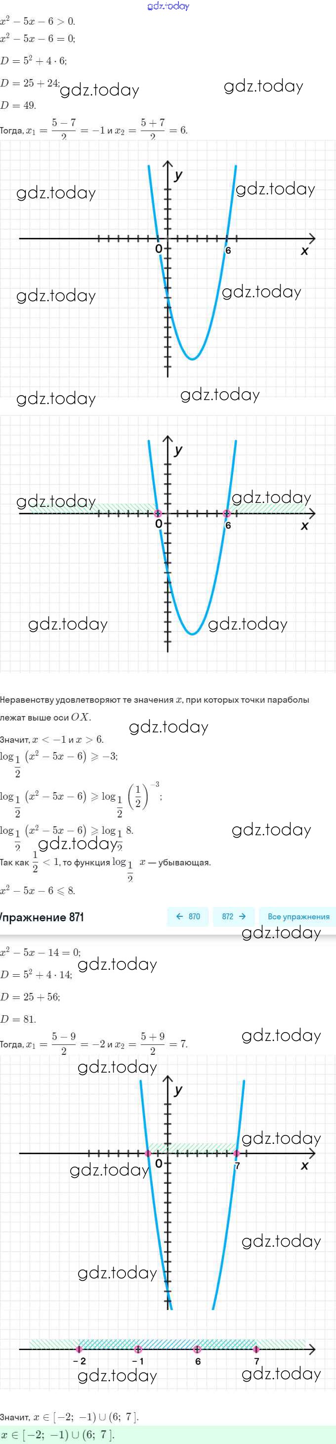 На страницах сайта gdz.today вы найдете учебный и вспомогательный материал, направленный на улучшения знаний школьной программы. ГДЗ - онлайн мир знаний Решение. Упражнения 871 Учебнику по Алгебре для 10 класса Колягин, Ткачёва Базовый и углубленный уровень Просвещение 2017