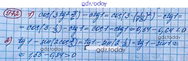 На страницах сайта gdz.today вы найдете учебный и вспомогательный материал, направленный на улучшения знаний школьной программы. ГДЗ - онлайн мир знаний Упражнения 972 Учебнику по Алгебре для 10 класса Колягин, Ткачёва Базовый и углубленный уровень Просвещение 2017