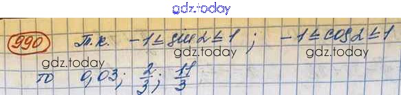 Ответы к Упражнения 990 Учебнику по Алгебре для 10 класса Колягин, Ткачёва Базовый и углубленный уровень Просвещение 2017