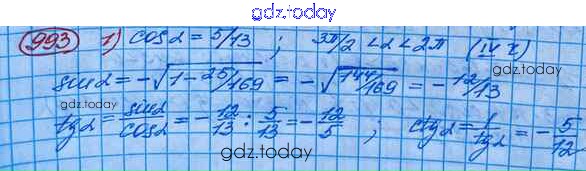 Ответы к Упражнения 993 Учебнику по Алгебре для 10 класса Колягин, Ткачёва Базовый и углубленный уровень Просвещение 2017
