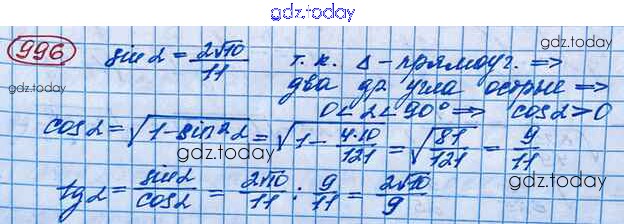 Ответы к Упражнения 996 Учебнику по Алгебре для 10 класса Колягин, Ткачёва Базовый и углубленный уровень Просвещение 2017
