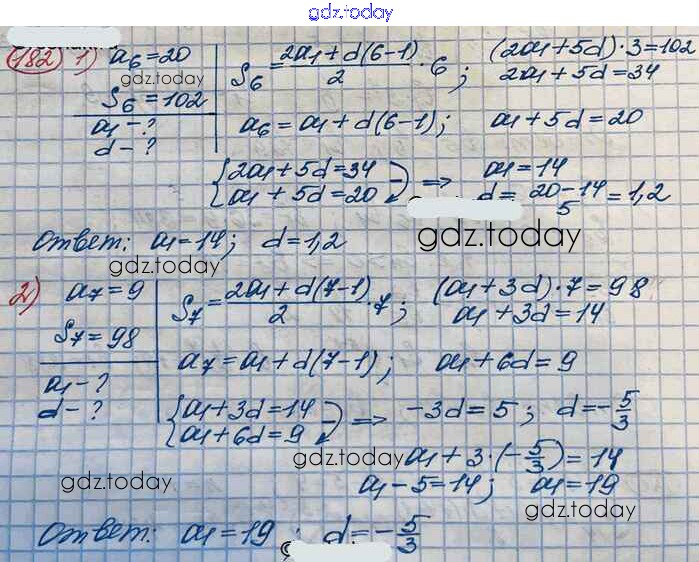 На страницах сайта gdz.today вы найдете учебный и вспомогательный материал, направленный на улучшения знаний школьной программы. ГДЗ - онлайн мир знаний Упражнения 182 Учебнику по Алгебре для 10 класса Колягин, Ткачёва Базовый и углубленный уровень Просвещение 2017