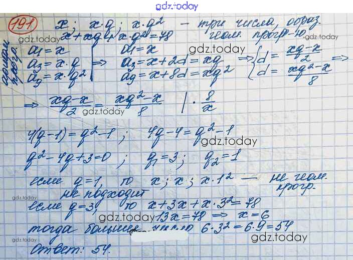 На страницах сайта gdz.today вы найдете учебный и вспомогательный материал, направленный на улучшения знаний школьной программы. ГДЗ - онлайн мир знаний Упражнения 191 Учебнику по Алгебре для 10 класса Колягин, Ткачёва Базовый и углубленный уровень Просвещение 2017