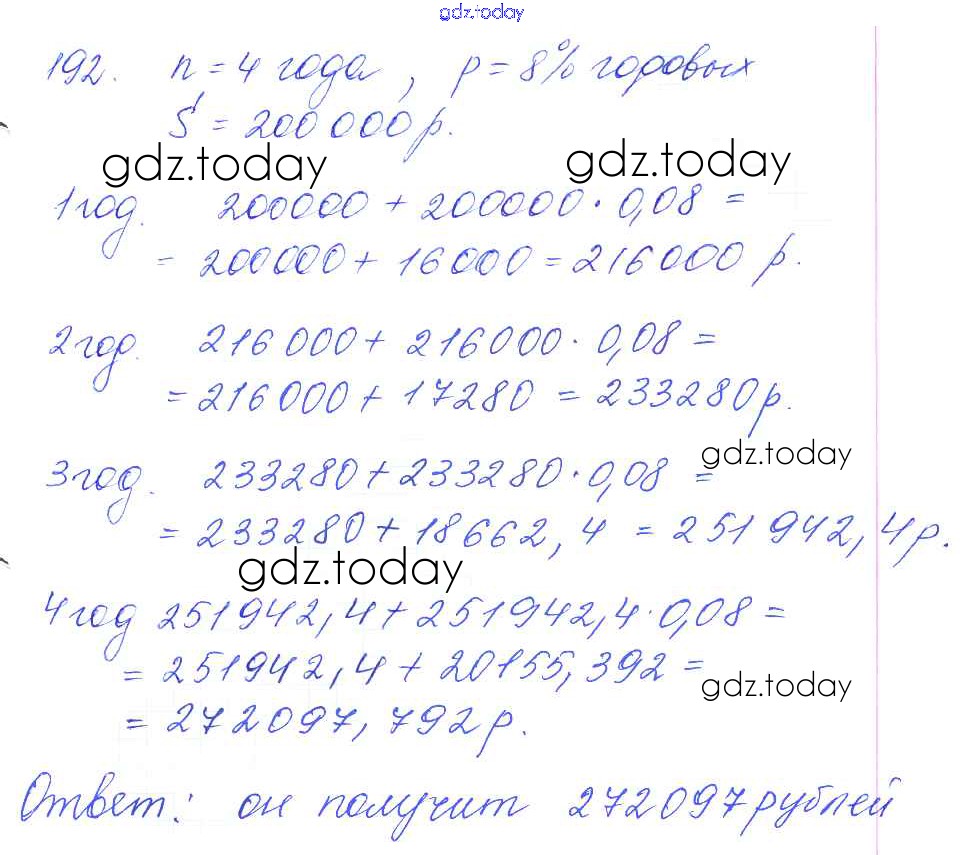 На страницах сайта gdz.today вы найдете учебный и вспомогательный материал, направленный на улучшения знаний школьной программы. ГДЗ - онлайн мир знаний Упражнения 192 Учебнику по Алгебре для 10 класса Колягин, Ткачёва Базовый и углубленный уровень Просвещение 2017