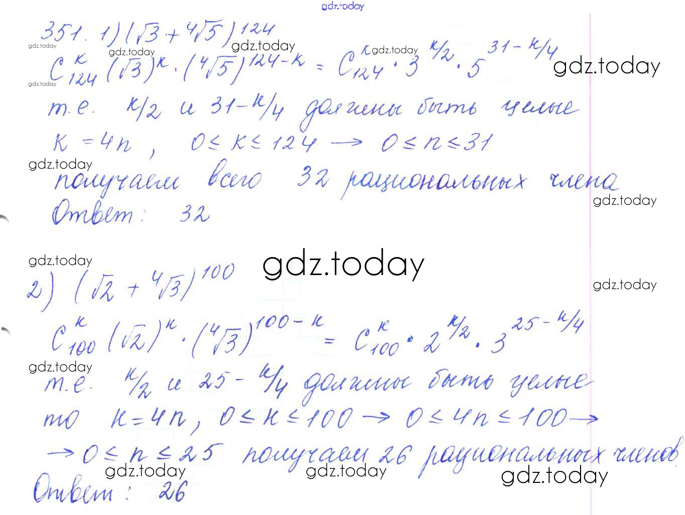 На страницах сайта gdz.today вы найдете учебный и вспомогательный материал, направленный на улучшения знаний школьной программы. ГДЗ - онлайн мир знаний Упражнения 351 Учебнику по Алгебре для 10 класса Колягин, Ткачёва Базовый и углубленный уровень Просвещение 2017