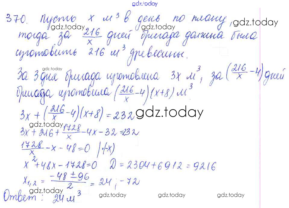 На страницах сайта gdz.today вы найдете учебный и вспомогательный материал, направленный на улучшения знаний школьной программы. ГДЗ - онлайн мир знаний Упражнения 370 Учебнику по Алгебре для 10 класса Колягин, Ткачёва Базовый и углубленный уровень Просвещение 2017