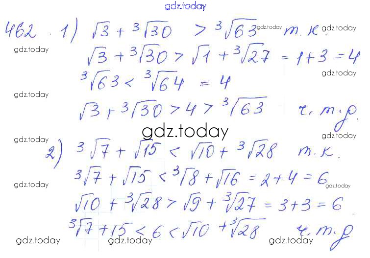 На страницах сайта gdz.today вы найдете учебный и вспомогательный материал, направленный на улучшения знаний школьной программы. ГДЗ - онлайн мир знаний Упражнения 462 Учебнику по Алгебре для 10 класса Колягин, Ткачёва Базовый и углубленный уровень Просвещение 2017