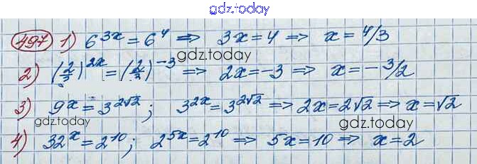 На страницах сайта gdz.today вы найдете учебный и вспомогательный материал, направленный на улучшения знаний школьной программы. ГДЗ - онлайн мир знаний Упражнения 497 Учебнику по Алгебре для 10 класса Колягин, Ткачёва Базовый и углубленный уровень Просвещение 2017