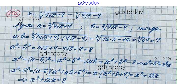 На страницах сайта gdz.today вы найдете учебный и вспомогательный материал, направленный на улучшения знаний школьной программы. ГДЗ - онлайн мир знаний Упражнения 502 Учебнику по Алгебре для 10 класса Колягин, Ткачёва Базовый и углубленный уровень Просвещение 2017