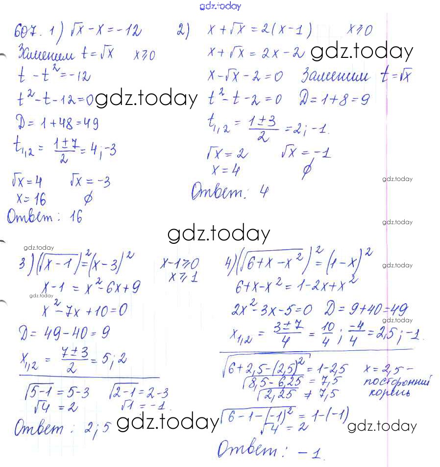 На страницах сайта gdz.today вы найдете учебный и вспомогательный материал, направленный на улучшения знаний школьной программы. ГДЗ - онлайн мир знаний Упражнения 607 Учебнику по Алгебре для 10 класса Колягин, Ткачёва Базовый и углубленный уровень Просвещение 2017